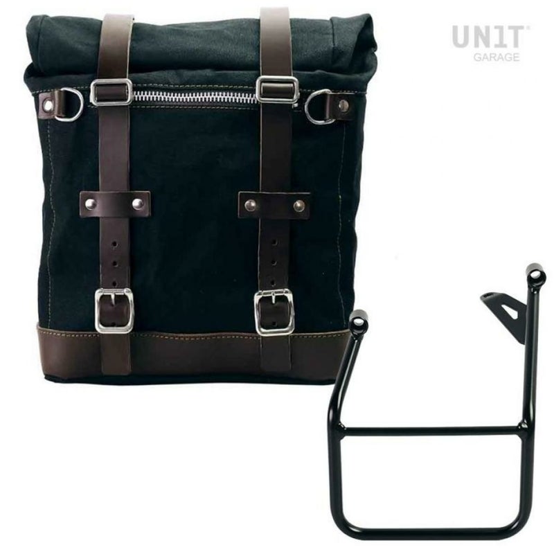 BMW R1300GS サイドバッグ(キャンバス地) スクラム22-30Lブラック/ブラウン&サイドバッグサポート フレーム左側キット ユニットガレージ