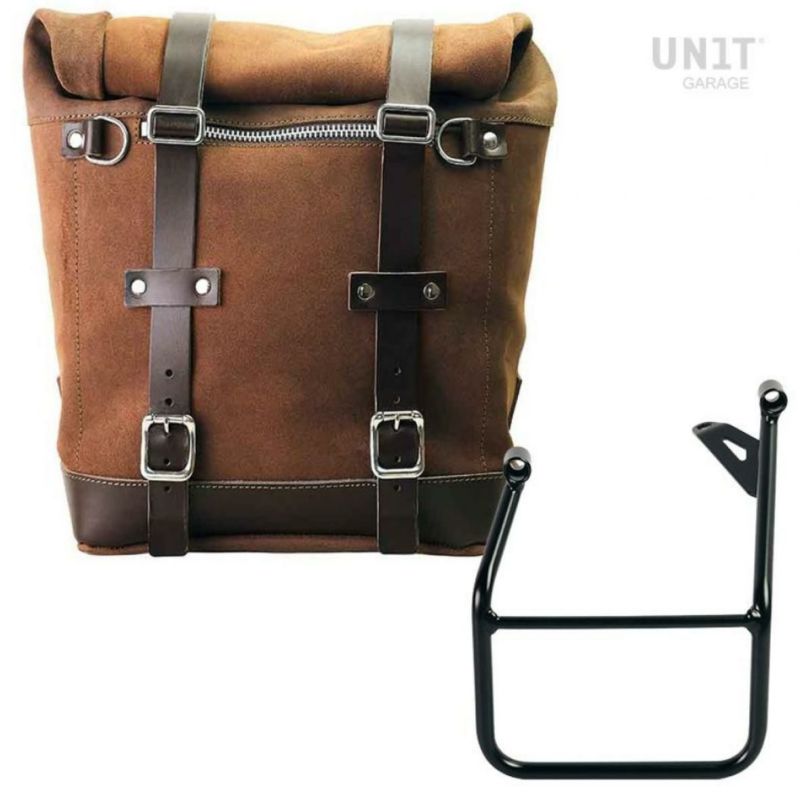 BMW R1300GS ワックス防水加工スエードレザーサイドバッグ スクラム22-30L コロラドブラウン&サイドバッグサポート フレーム左側キット ユニットガレージ