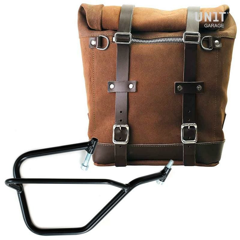 ヤマハ MT-09/XSR900専用、UNIT GARAGEのワックス防水加工スエードレザー製サイドバッグと右側サポートフレームのセットです。