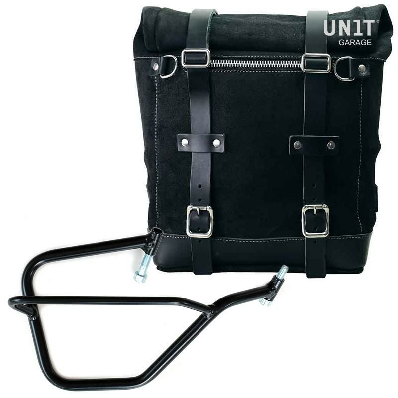 ヤマハ MT-09/XSR900専用、UNIT GARAGEのワックス防水加工スエードレザー製サイドバッグと右側サポートフレームのセットです。
