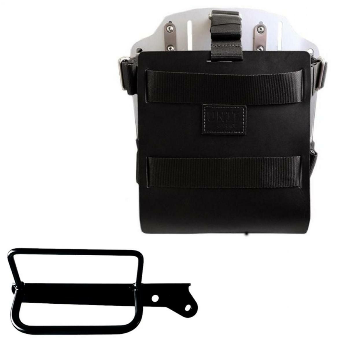 ロイヤルエンフィールド クラシック350/メテオ350/スーパーメテオ650/クラシック650/ショットガン650 アルミナムブラックバックホルダーブラックレザーフロント&サポート フレームキット右側 ユニットガレージ