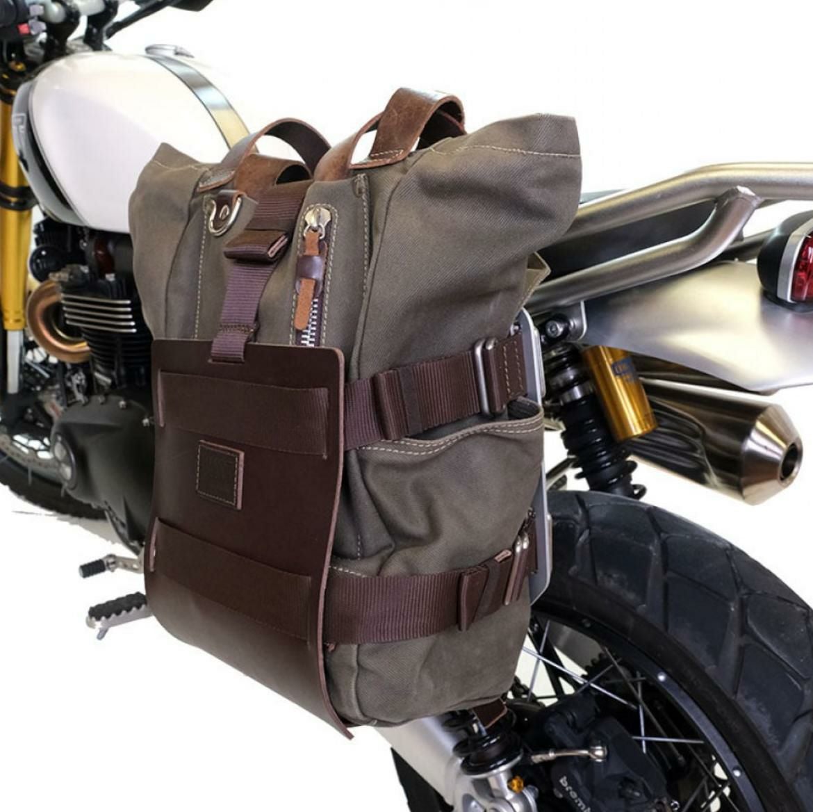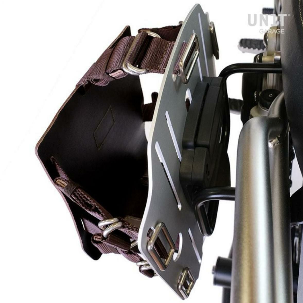 ロイヤルエンフィールド クラシック350/メテオ350/スーパーメテオ650/クラシック650/ショットガン650 アルミナムシルバーバックホルダーブラウンレザーフロント&サポート フレームキット右側 ユニットガレージ