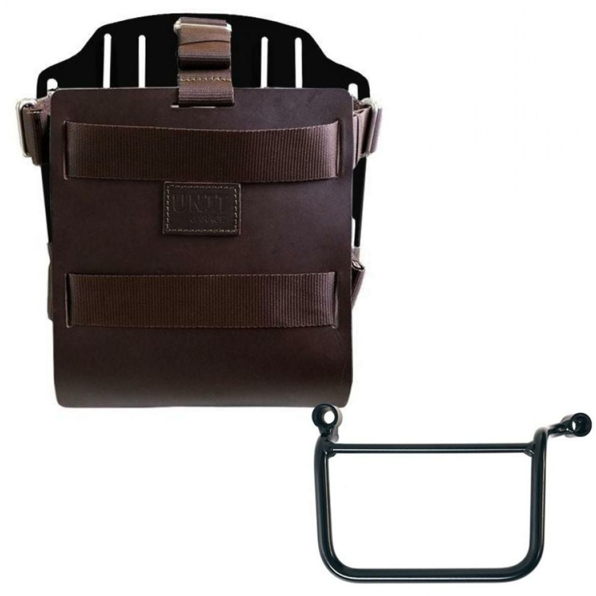 ロイヤルエンフィールド クラシック350/メテオ350/スーパーメテオ650/クラシック650/ショットガン650 アルミナムブラックバックホルダーブラウンレザーフロント&サポート フレームキット右側 ユニットガレージ