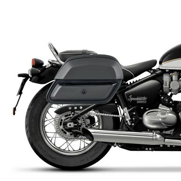 Viking Bags(バイキングバッグス)製「Pantheon Medium」28L クイックマウント サドルバッグ。トライアンフ スピードマスター(2018~2026)専用設計モデルです。