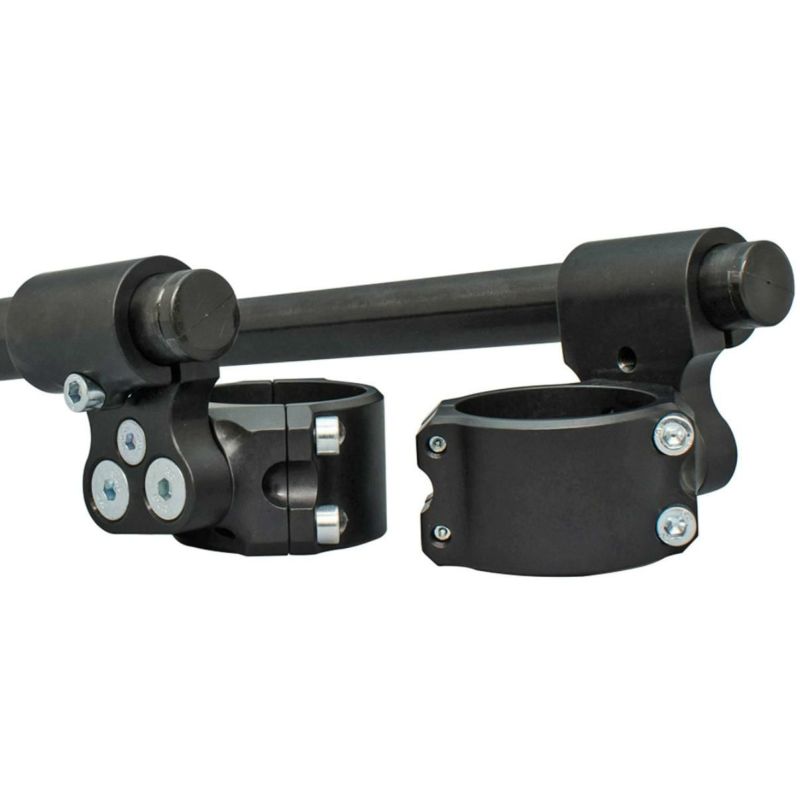 【商品説明】 ヤマハ YZF-R3/R25用1.5インチライズ セパハン/クリップオンハンドル フォーククランプ径:41mm ブラック ウッドクラフトの 3ピース式クリップオンライザーは、取り付け・取り外しが簡単にできるよう特別に設計されています。3ピース構造はアッパーブラケット下にクリップオンを装着していても、フロントエンド全体を分解せずに整備が可能です ・本キットは、一般的なレース用クリップオンより 1.5インチ高く設定されていますので、ハンドル位置を高めてライダーの快適性を向上させることができます ・キットには 7/8インチ径のバーが付属しますが、バー長を STD(スタンダード:12インチ)とXLバー(13.5インチ)をお選び頂けます ・本仕様はレース仕様です ステアリングストッパーを装着しないとハンドルと本体に干渉があります 注:上記参考写真にシルバーカラーのバーも含まれますが、本仕様はブラックのみです