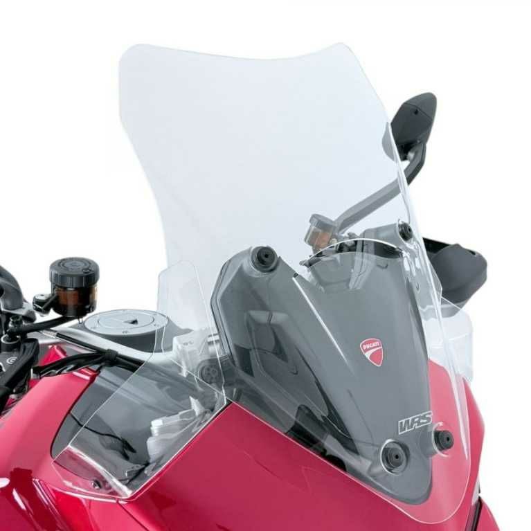 WRSのツーリングスクリーン(クリア)は、Ducati Multistrada V2 / V2 S(2025-2026)に向けて、純正の雰囲気を崩さない“ちょうどいい防風”を狙った商品。