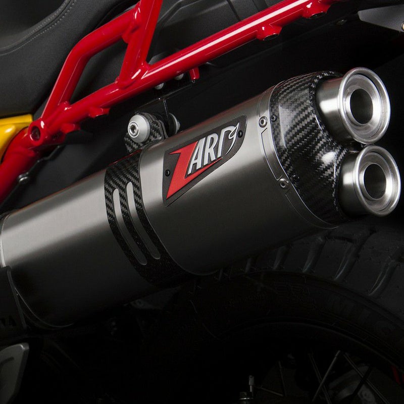 【商品説明】 MOTO GUZZI V85TT用、イタリアの名門ZARD製のスリップオンマフラー。 熟練工が一つ一つ手作業で作り上げ、とても綺麗な仕上がりとなっています。 重量:2.9kg(純正:5.3kg) 約半分の重量 出力の向上と軽量化により車両のポテンシャルを引き出します。 レーシーで迫力あるサウンドです。 動画で排気音を視聴できます。 【材質】 エキゾースト:ステンレス スリーブ:チタン 【仕上げ】 サテン