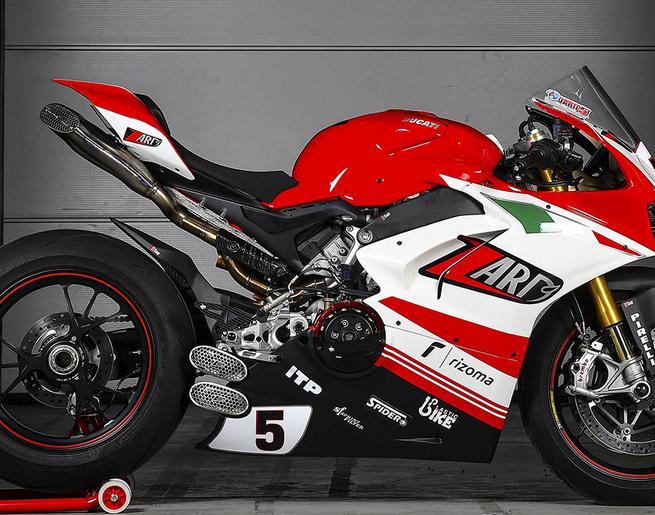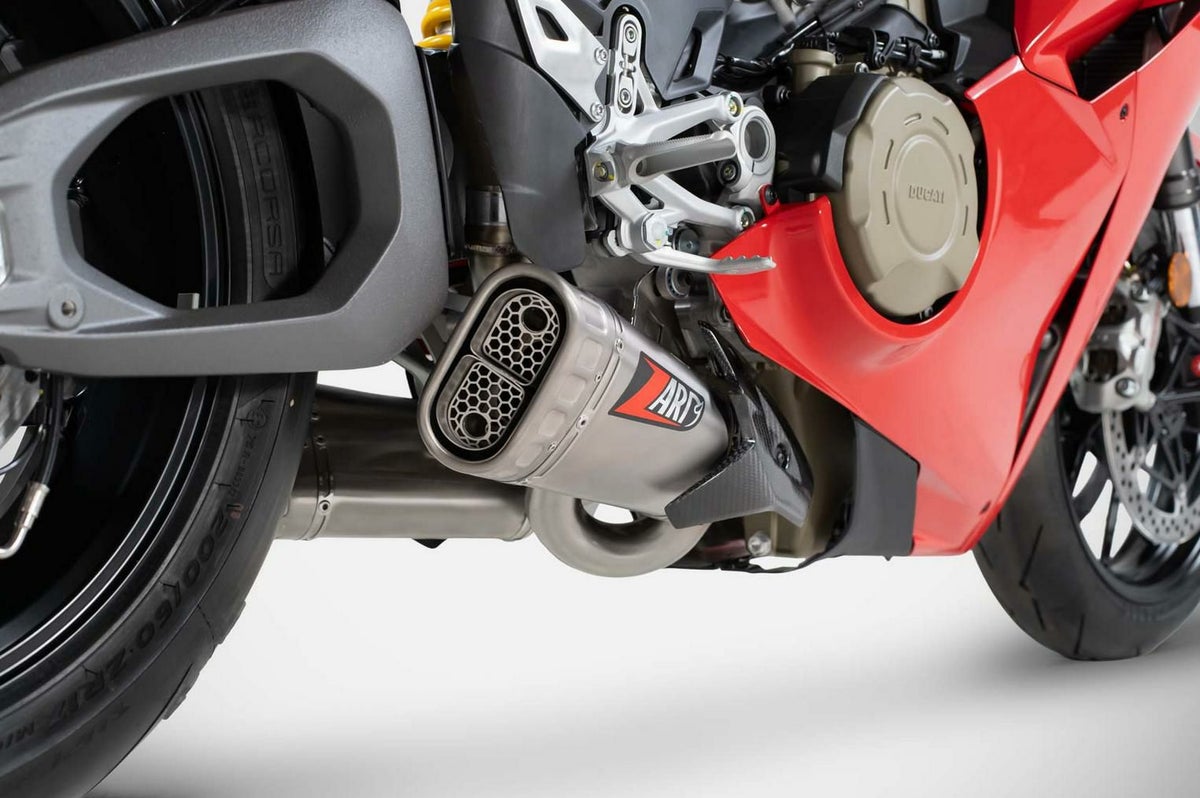 DUCATI パニガーレ V4 E5+/ストリートファイターV4 E5+ 25- コンペンセーテッド・スリップオンマフラー チタン レース用 ZARD