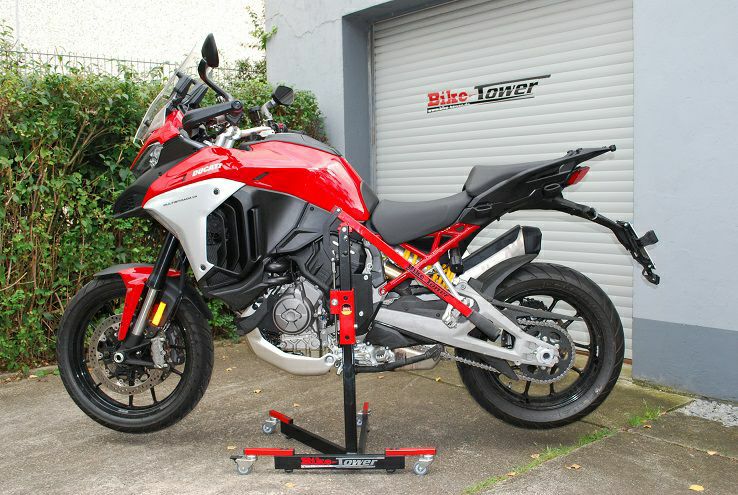 そのほかにも、タイヤウォーマーの着脱も容易になったり、Bike-Tower(バイクタワー)は、様々なシチュエーションで大活躍すること間違いないバイクスタンドです。