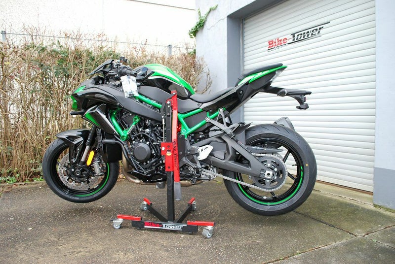 そのほかにも、タイヤウォーマーの着脱も容易になったり、Bike-Tower(バイクタワー)は、様々なシチュエーションで大活躍すること間違いないバイクスタンドです。