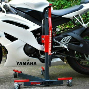 そのほかにも、タイヤウォーマーの着脱も容易になったり、Bike-Tower(バイクタワー)は、様々なシチュエーションで大活躍すること間違いないバイクスタンドです。