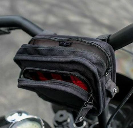 Tバー形状のハンドルバーに取り付ける事を想定し、背面に付属するベルクロストラップを使用して固定します。