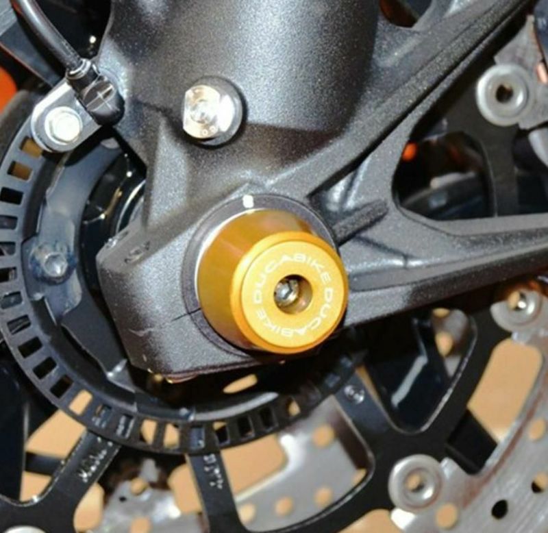 DUCABIKE フロントアクスルスライダー ゴールド DUCATI デザートX/ハイパーモタード/ムルティストラーダ