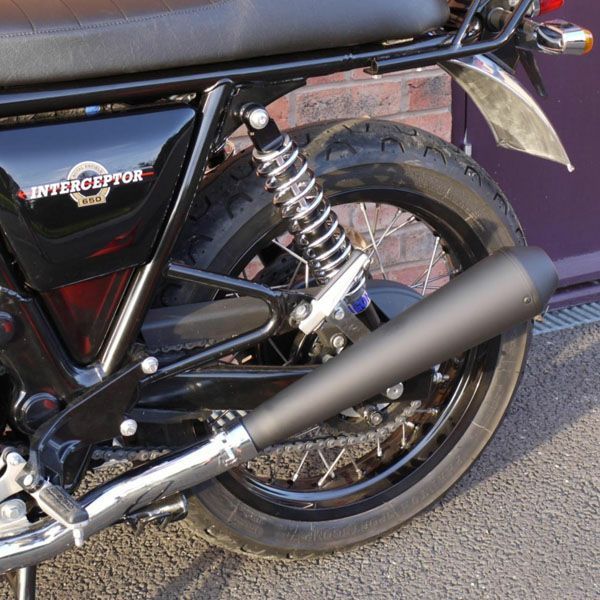 ロイヤルエンフィールド インターセプター650/コンチネンタルGT650用リバースコーンタイプ メガステンレス スリップオンマフラー ブラック仕上げ