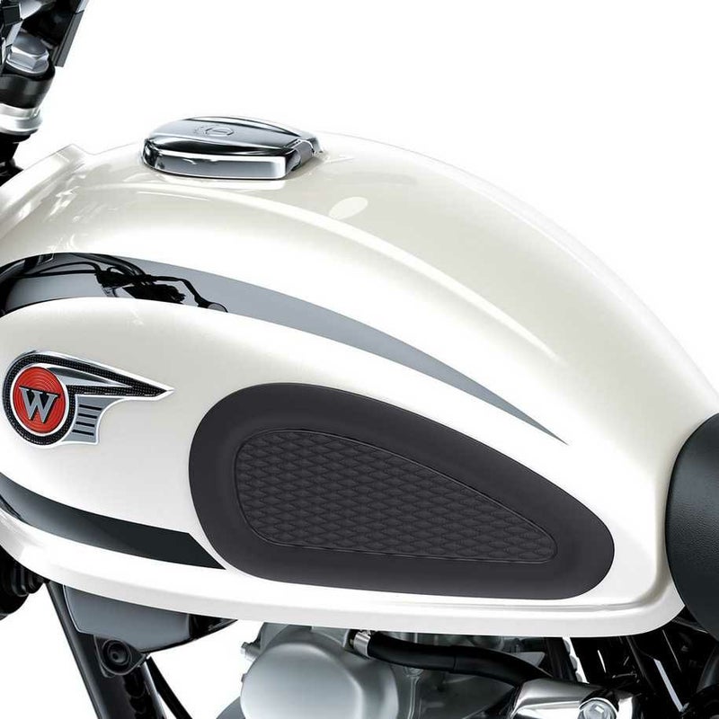 Kawasaki純正のニーパッドセット(W230用)は、タンク表面を保護しながら快適なライディングポジションをサポートする機能性アクセサリーです。