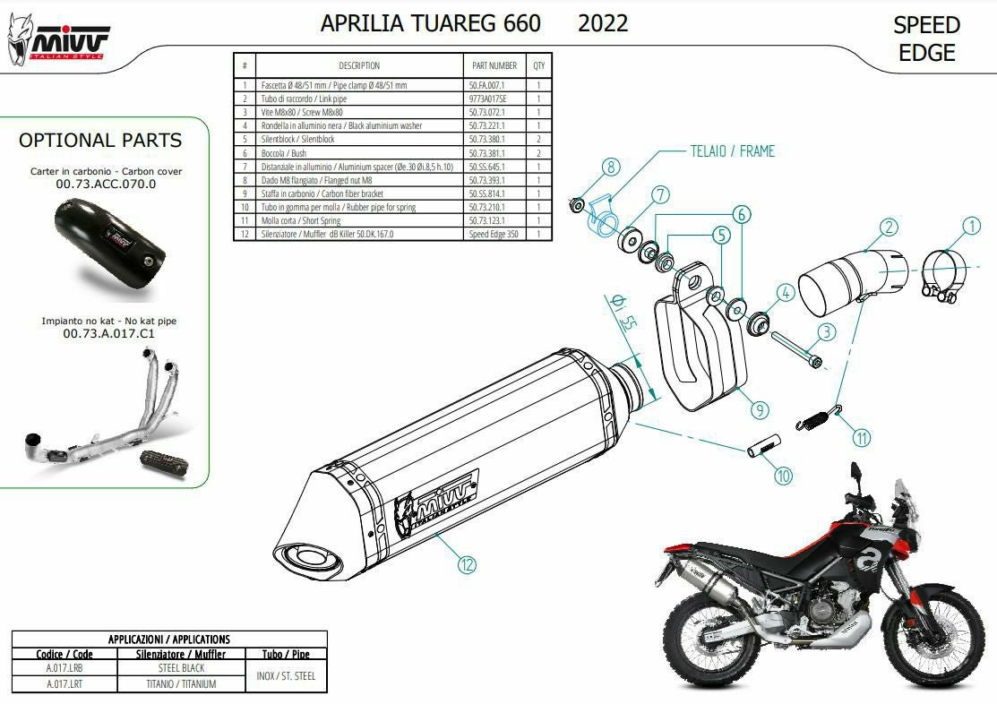 カートに入れる お気に入りに登録する 他の画像を見る MIVV スリップオンマフラー SPEED EDGE ブラックステンレス APRILIA トゥアレグ660 (2022-2024) 商品番号 A.017.LRB 販売価格 ¥ 114,510 税込 SALE価格 ¥ 114,510 税込 APRILIA トゥアレグ660 (2022-2024)EURO規制対応、車検対応マフラー 4-8週間