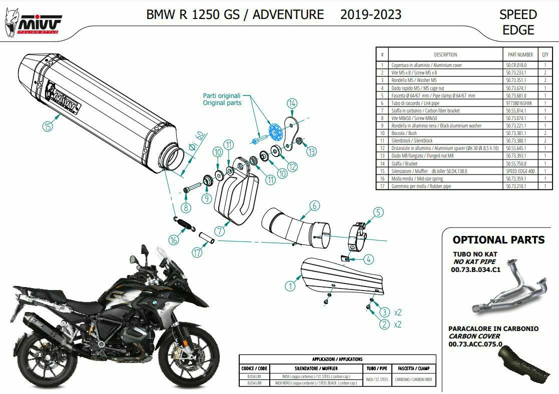 カートに入れる お気に入りに登録する 他の画像を見る MIVV スリップオンマフラー OVAL カーボン/カーボンキャップ BMW R1250GS / ADVENTURE (2019-2023) 商品番号 B.034.LEC 販売価格 ¥ 94,160 税込 SALE価格 ¥ 94,160 税込 BMW R1250GS / ADVENTURE (2019-2023)EURO規制対応、車検対応マフラー 4-8週間
