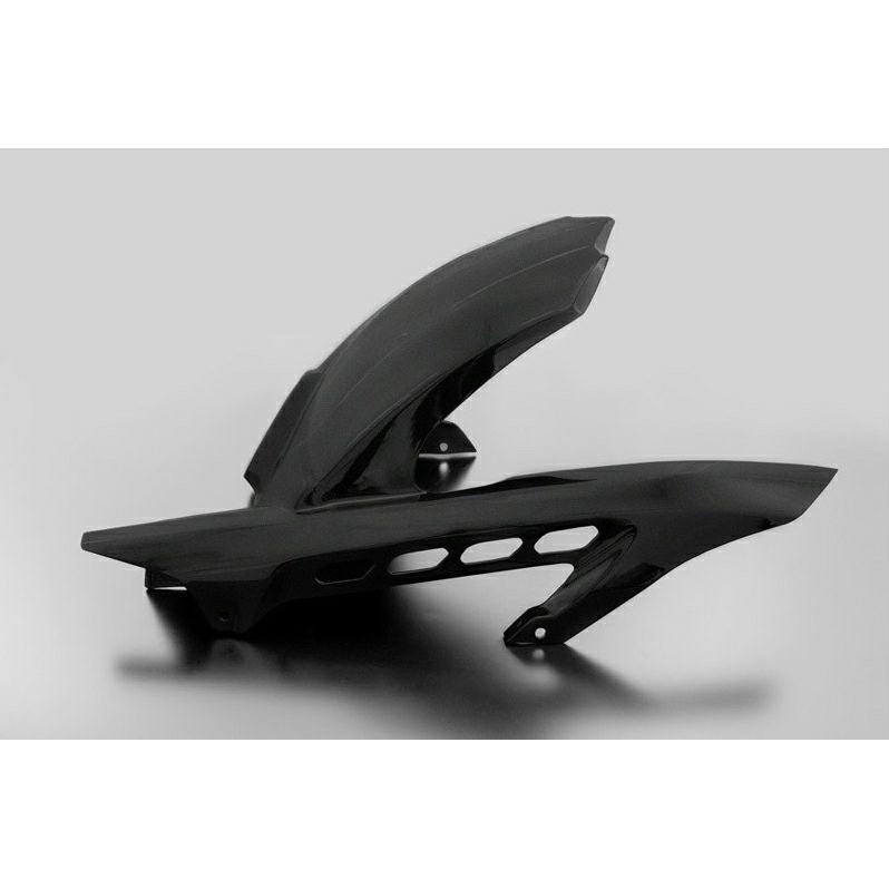 STDのチェーンカバーを兼ねたデザインを踏襲しながら約120mm後方に延長することで、泥跳ねや水撥ねを大幅に軽減すると共に、 テールカウルとタイヤとの「隙間感」を無くす事で、より一層攻撃的でレイシーなリアビューを飾り上げます。