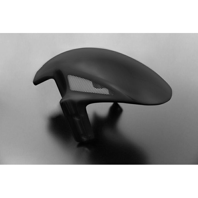 フォークガードを兼ねたブラケット部を一体成型とし、先端部からフェンダー全体にかけて滑らかな曲線を描き、飛び石をガードしながらも大胆かつ戦闘的なデザインに加え繊細で無駄のない作り込みを実現しました。