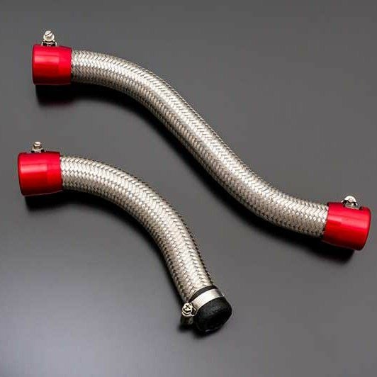 カラーアルマイトを施されたアルミECONO-FITと結合される「ステンレスメッシュチューブ」は、エンジン周りの圧倒的なドレスアップ効果と同時に、耐圧性と耐久性を向上させます。