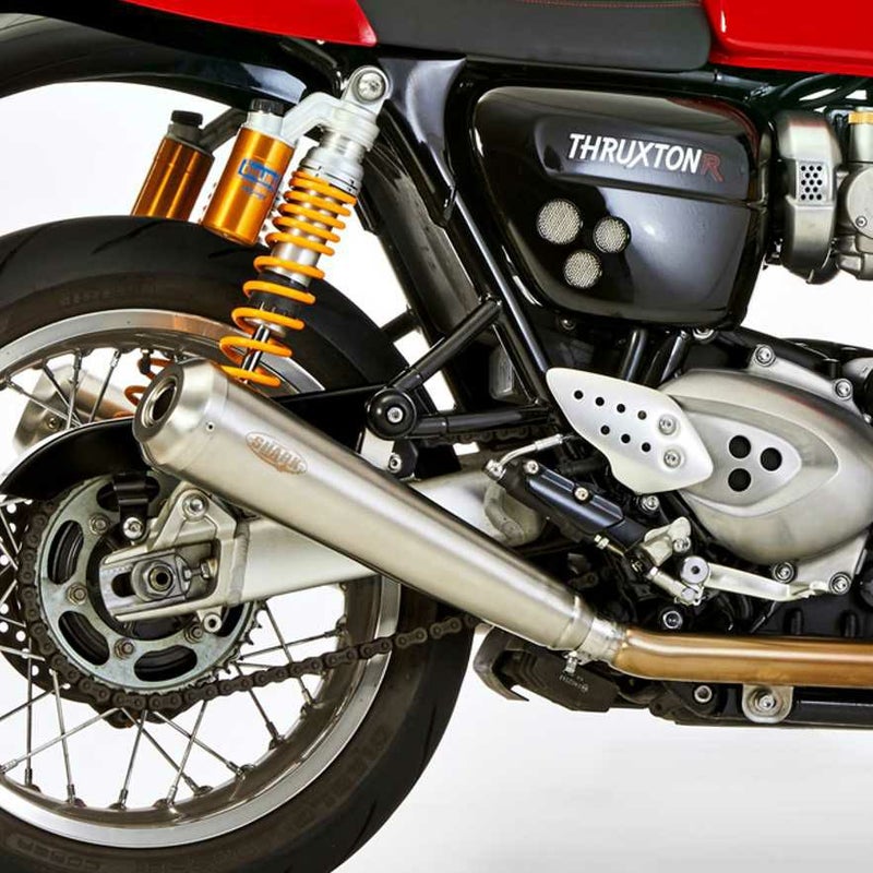 SHARK Retro スリップオンマフラーは、デザイン性と性能を両立させ、TRIUMPH Speed Twin 1200 (2019-2020) Thruxton/R (2016-2020)をよりクラシカルかつ個性的に仕上げたいライダーに最適な選択肢です。