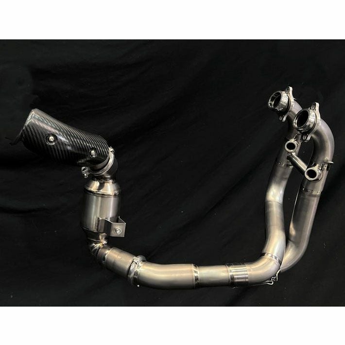 日本製の最高級Ti1チタンを使用し、純正エキパイと触媒コンバーターに比べて-4.5kgの軽量化を実現。
