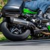 このマフラーは、純正パニアケース装着車にも適合するようコンパクトに設計されています。
