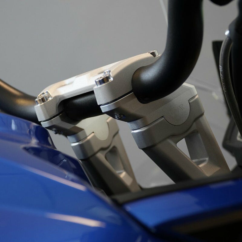 タイガースポーツ800の長時間のツーリングで首や肩、背中の疲れが気になるTriumph Tiger Sport 800オーナーに朗報!Voigt Moto Technikの30 mmアップ × 20 mmオフセット ハンドルバーライザーで、姿勢と快適性をワンランクアップ。 【主な特長】 ●30 mmアップ・20 mm前寄せで疲れにくい姿勢へ 手前に近くなり、より直立に近い自然な姿勢で、ツーリングも快適。 ●信頼のTÜV認証・ABE取得 高い安全性と公道対応品質を保証。 ●CNC切削 × ガラスビーズ研磨 × 陽極酸化処理 美しく丈夫な仕上がりで、長期間美しさを維持。 ●取り付けは簡単、改造不要 車体加工の必要なし。付属パーツと説明書で手軽に装着できる。 ●5年保証付き 長く安心して使える品質を提供 ●セット内容: ライザー(左右1セット)、取り付け用ボルト・部品一式、取扱説明書、ABE証明書。