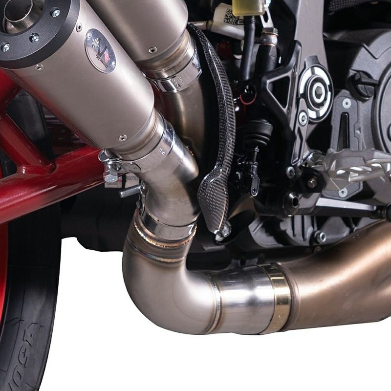 VPERFORMANCE(Vパフォーマンス)のツインチタンマフラーセット(AIND0070015)のミッドパイプをこのパイプに入れ替えることで、レース仕様となります。