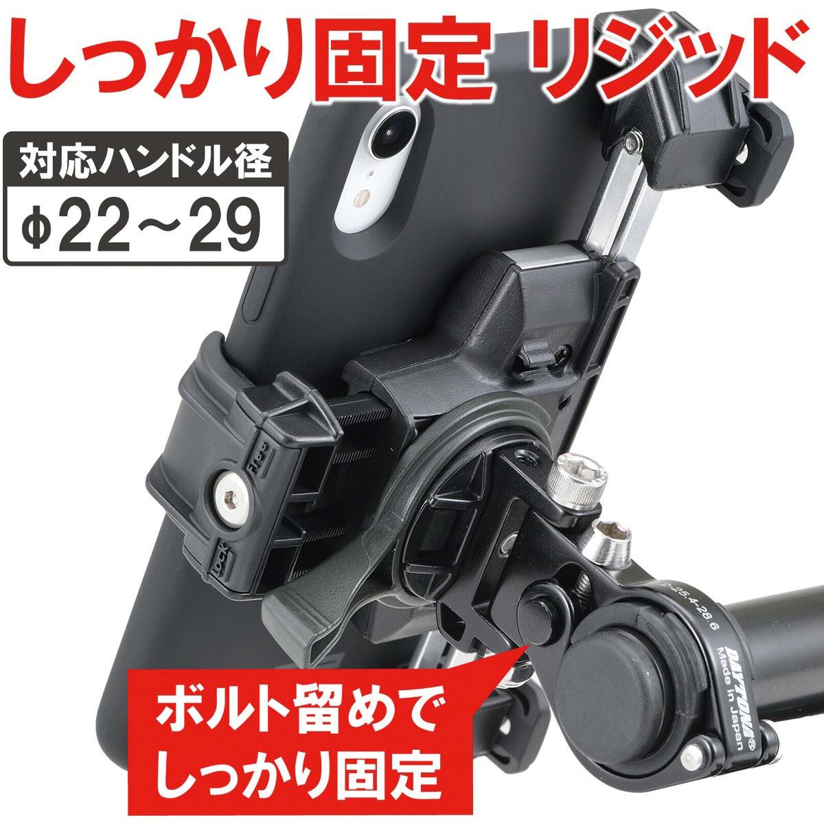 7/8インチ(22mm)、1インチのハンドル用 ハンドルバーなどに固定するスマホホルダー