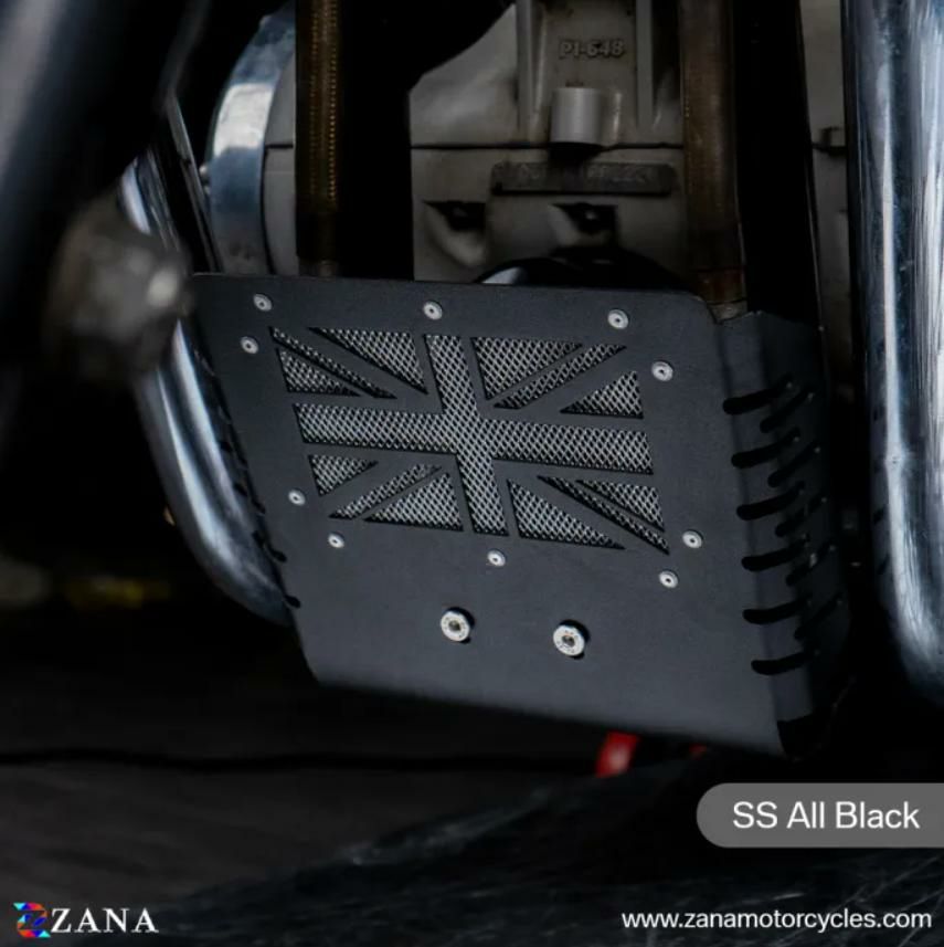 ロイヤルエンフィールド コンチネンタルGT/インターセプター 650 スキッドガードステンレス製 ユニオンジャック ブラック ZANA Motorcycles