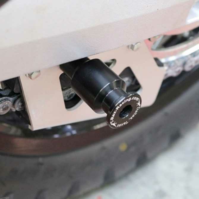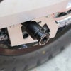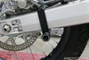 一般的な「チェーンアジャスター部に付く」タイプのアダプターだとホイール脱着時に外れてしまいがちですが、こちらの商品はチェーンアジャスターではなくスイングアーム本体に固定するため、ホイールを外す作業にも対応が可能です。