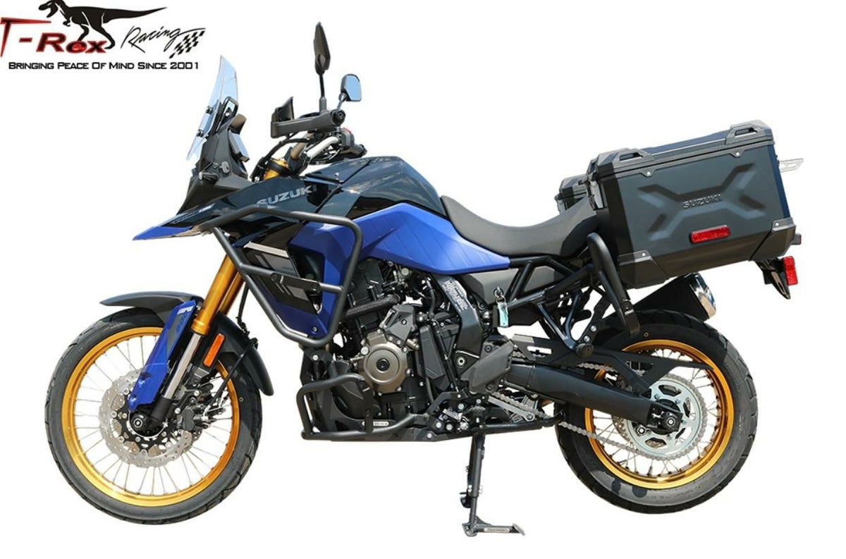 Vストローム(V-STROM) 800は、オンロードを中心としたアドベンチャーツーリングを楽しむことをイメージして作られ、フロント19インチ、リヤ17インチのチューブレスタイヤは、強化されたフロントブレーキと共に市街地や高速道路などオンロードでのさまざまなシーンで安定した走りに貢献する。 一方、Vストローム(V-STROM) 800DE(は、フロント21インチ(リア17インチ)のスポークホイールを採用し、オフロード走破性が高められている。 「DE」とは「デュアル・エクスプローラー」を意味する。 共に風防効果の高い大型ウィンドスクリーンを標準装備し、ロングライドの快適性を追求している。 エンジンは775cm3パラレルツインエンジンを開発。 革新的な2軸1次バランサー「スズキクロスバランサー」を採用し、270°のクランクは、心地よい鼓動感で、低回転域から滑らかで扱いやすい出力特性と、高回転域までスムーズに吹けあがる絶妙なバランスに仕上げてる。スズキインテリジェントライドシステム(S.I.R.S.)を搭載。 路面の変化やライダーの好みに合わせ最適な設定を提供し、ライダーが求めるニーズに合わせたパフォーマンス特性を最適化したトップクラスのミドルクラスのアドベンチャーバイクと云える。 モトパーツでは、カスタムパーツとして、マフラーはヨシムラ、ボディーパーツのガード・プロテクションはSW-MOTECH、T-REXレーシング、ハンドル周りは、ライザーのVOIGT MOTO、ラック・キャリア・ラックでは、SW-MOTECH、T-REXレーシング、ウインドシールド、ウインドスクリーンはPUIG(プーチ)、POWERBRONZE(パワーブロンズ)、サスペンション&足回りは、T-REXレーシングなどをラインアップしている。