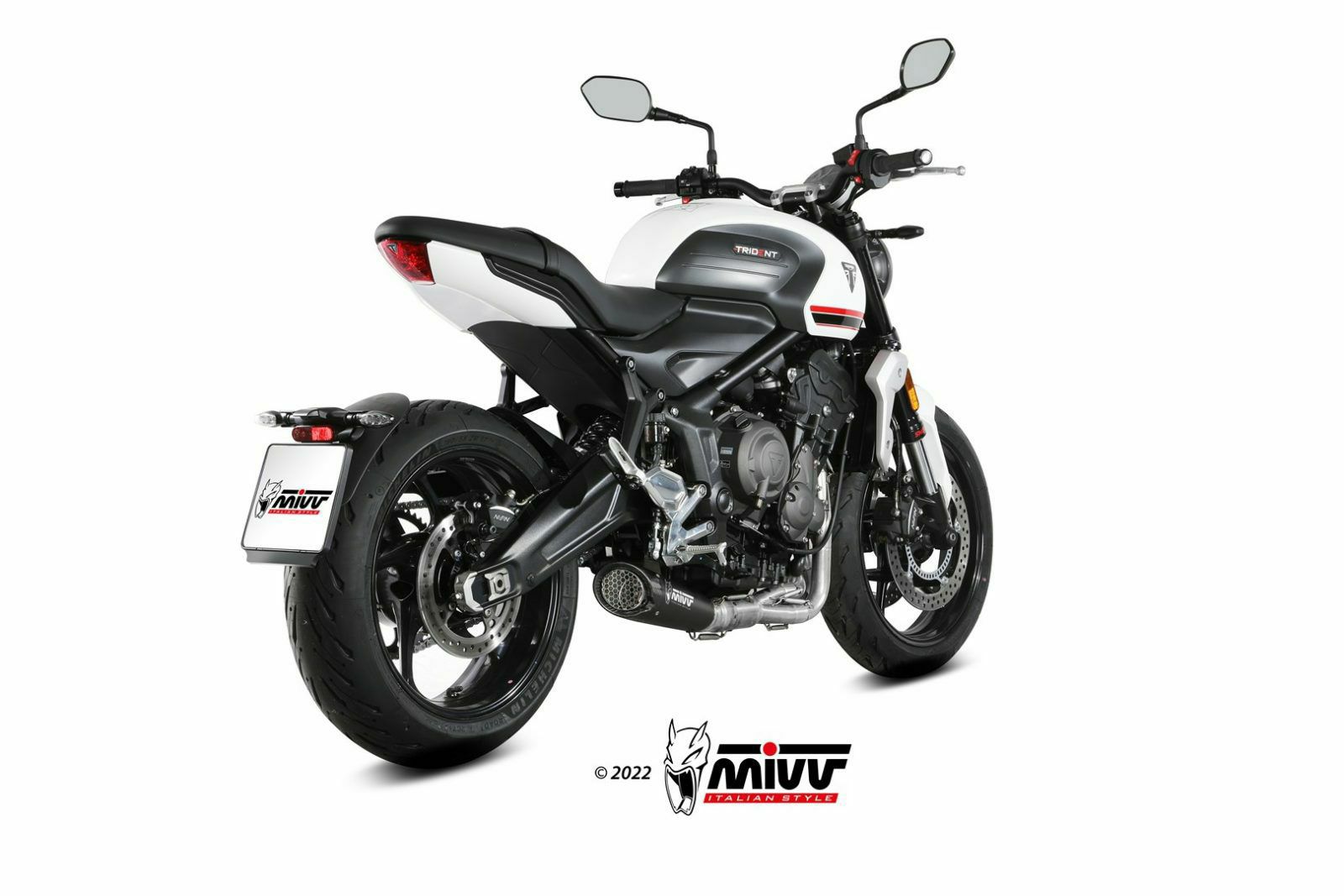 イタリアのマフラーブランドMIVVのブラックステンレス製フルシステムマフラー。