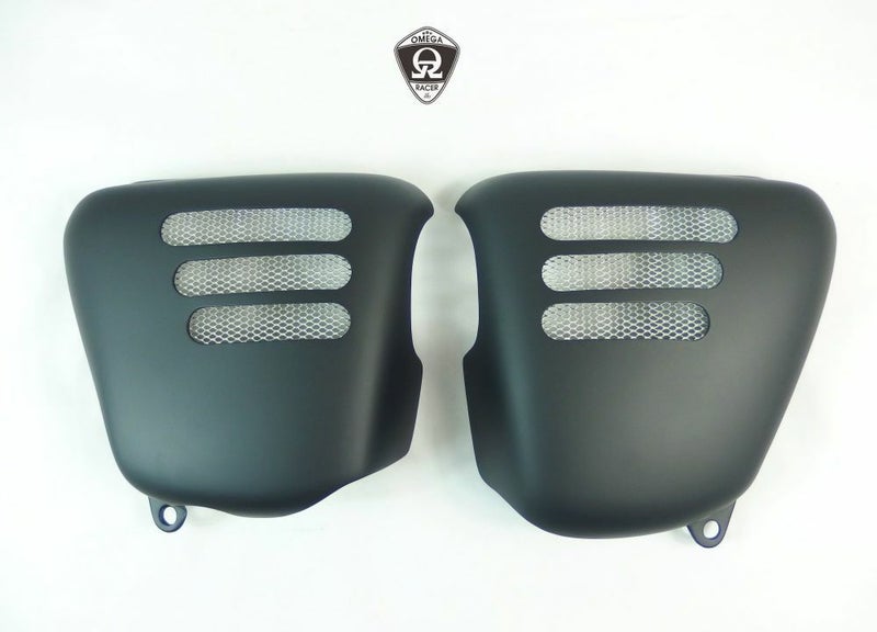 【商品説明】 アメリカやヨーロッパでも人気のオメガレーサー、サイドカバーです。 厚みのあるグラスファイバー製で、マットブラックに塗装されています。 グロスブラック仕上げもあります。 左右ペアでの販売です。