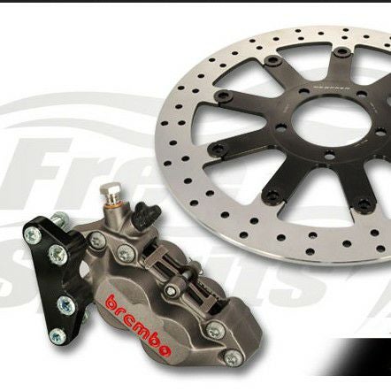 Free Spirits の「4ポット フロントブレーキキット」は、空冷ボンネビル 向けに設計された、性能と制動力を向上させるフロントディスクブレーキアップグレードキットです。