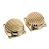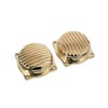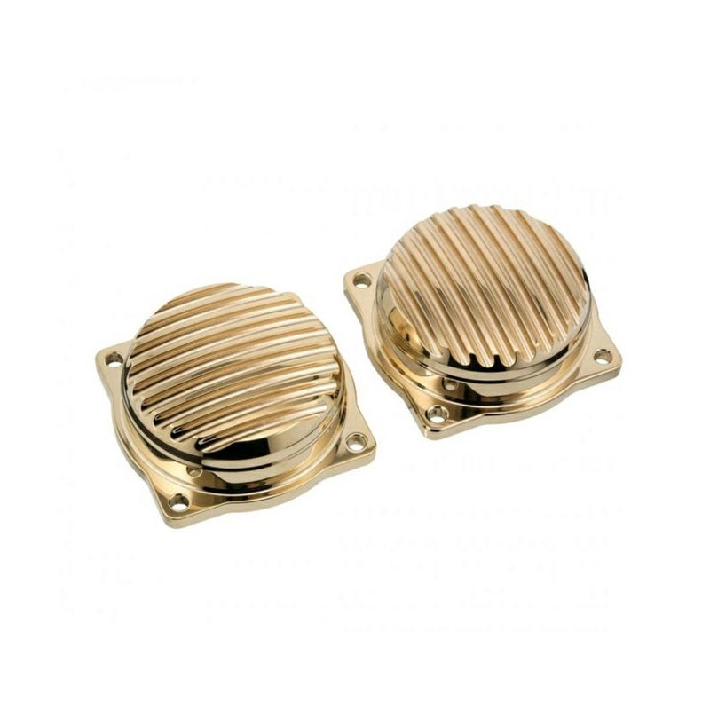 【商品説明】 トライアンフツインモデルのフュエルインジェクション・スロットルボディトップカバーをカスタムします。 なべ型の形状にフィンがついた、凝った造形です。 素材はC36000ビレットブラス製。CNCマシン削り出し品。 ポリッシュされた面とブラシフィニッシュのコントラスト仕上げ。 本物のブラスの質感がカスタム感を引き立てます。 2個セット