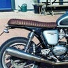【商品説明】 タックロールシート。 高密度(80kg/m3)のポリウレタンフォームを使用し、ツーリング等長時間の乗車でも快適に過ごせる様に作られています。 空冷ツインのトライアンフ車両に適合し、純正よりも1インチ細身になっています。