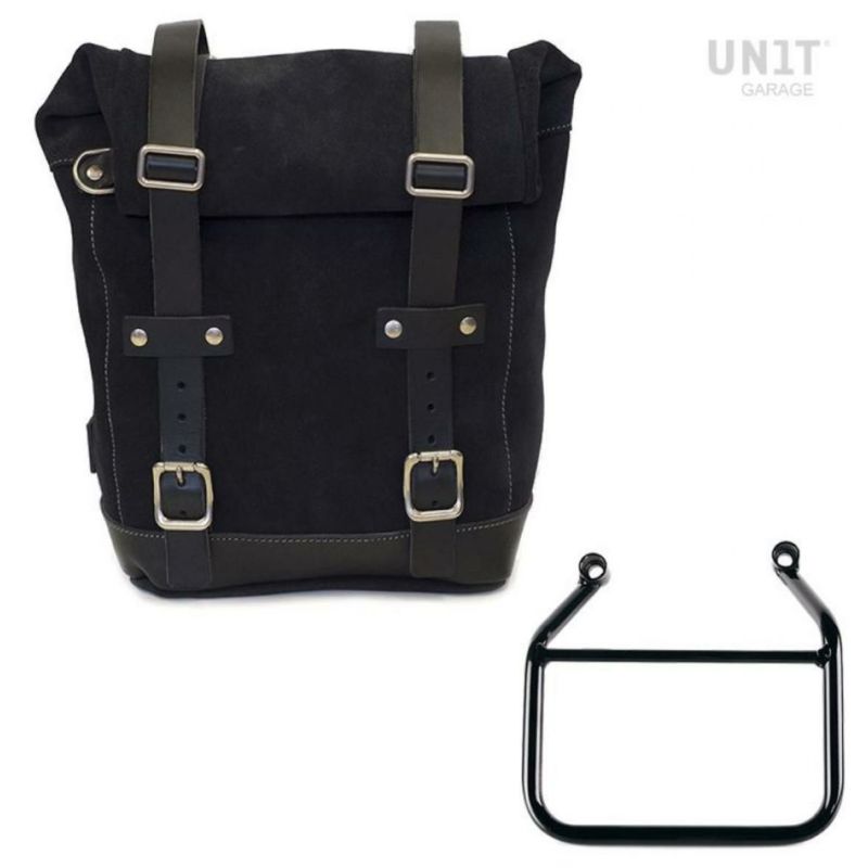 トライアンフ スピード400/スクランブラー400X ワックス防水加工スエードレザーサイドバッグジェットブラック &サイドバッグサポート フレーム左側キット ユニットガレージ