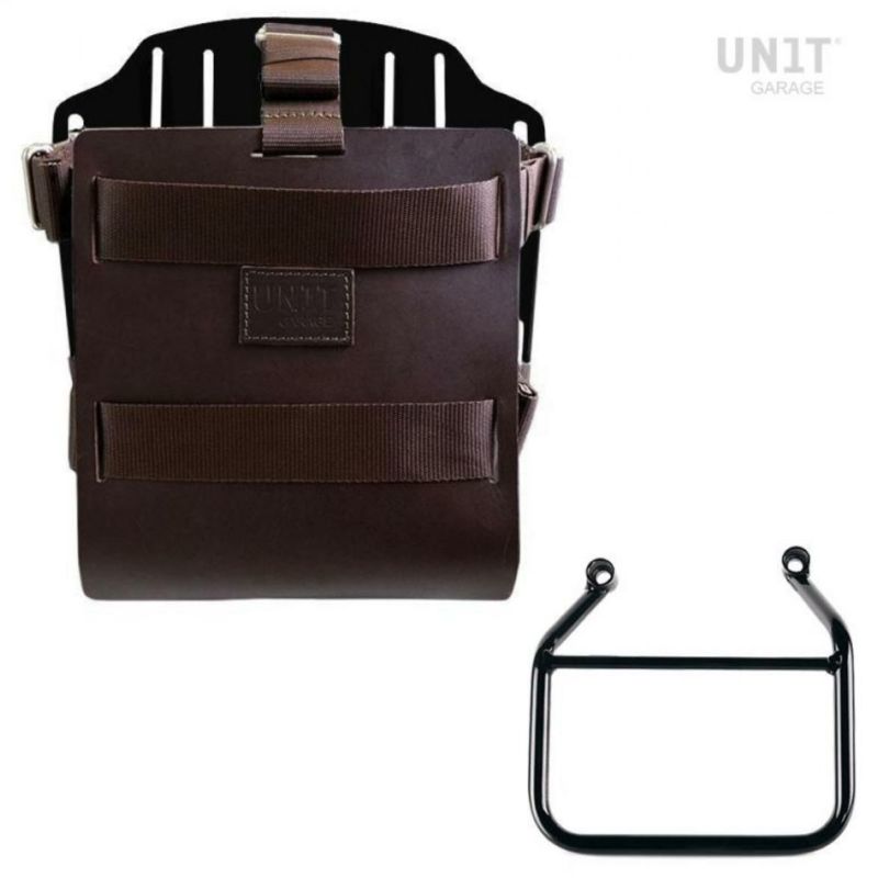 トライアンフ スピード400/スクランブラー400X アルミナムブラックバックホルダーブラウンレザーフロント&サドルバッグサポートフレーム左側キット ユニットガレージ