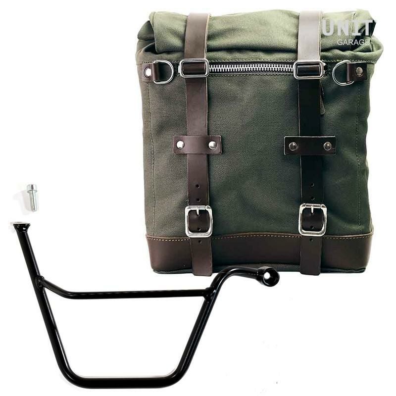 トライアンフ スピードツイン900専用、UNIT GARAGEのキャンバス製サイドバッグと右側サポートフレームのセットです。