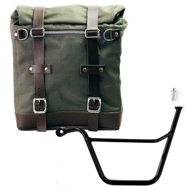 トライアンフ スピードツイン900専用、UNIT GARAGEのキャンバス製サイドバッグと左側サポートフレームのセットです。