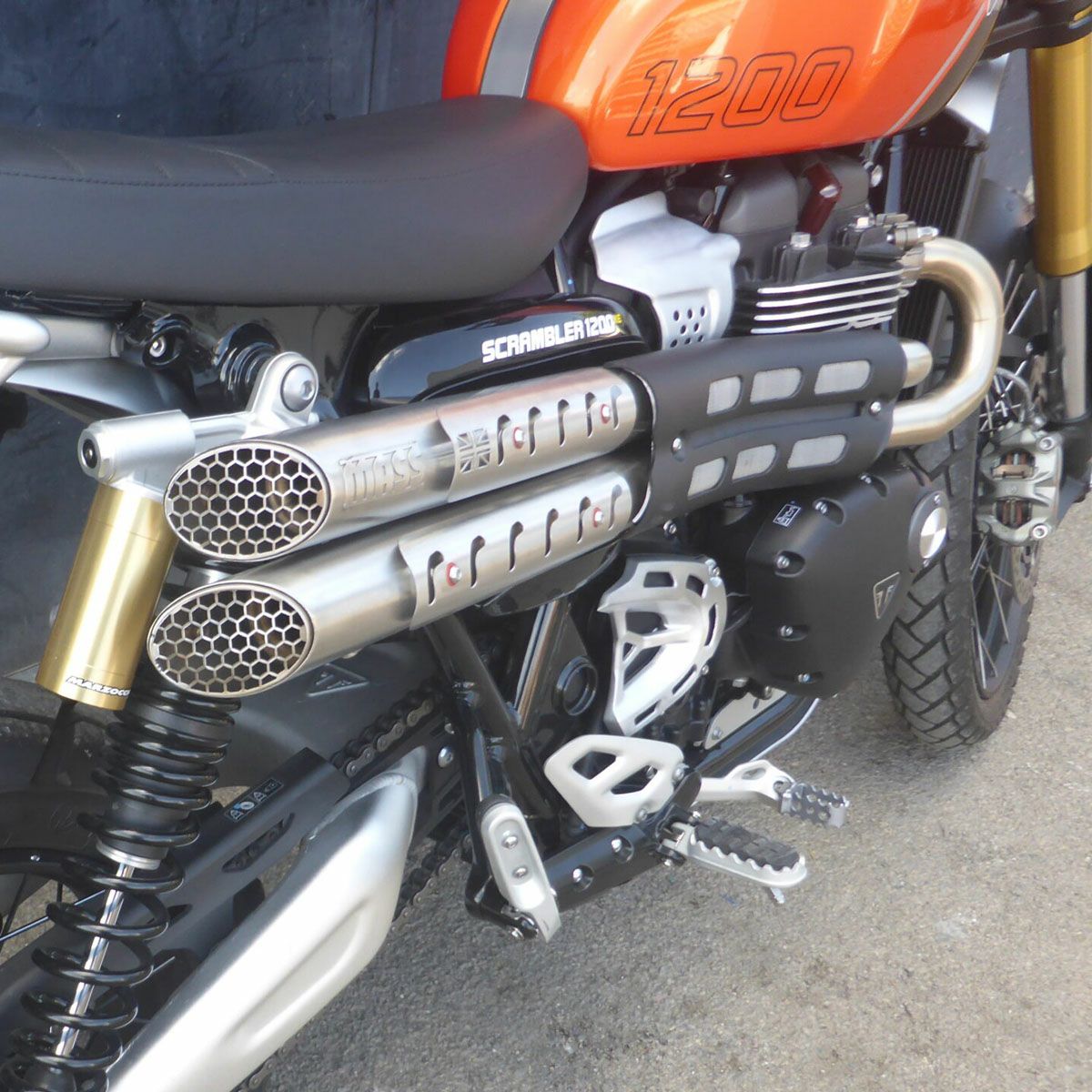 トライアンフ スクランブラー1200 24- ステンレス2in2 Mohave UK フルエキゾーストマフラー サテン MASS Exhaust