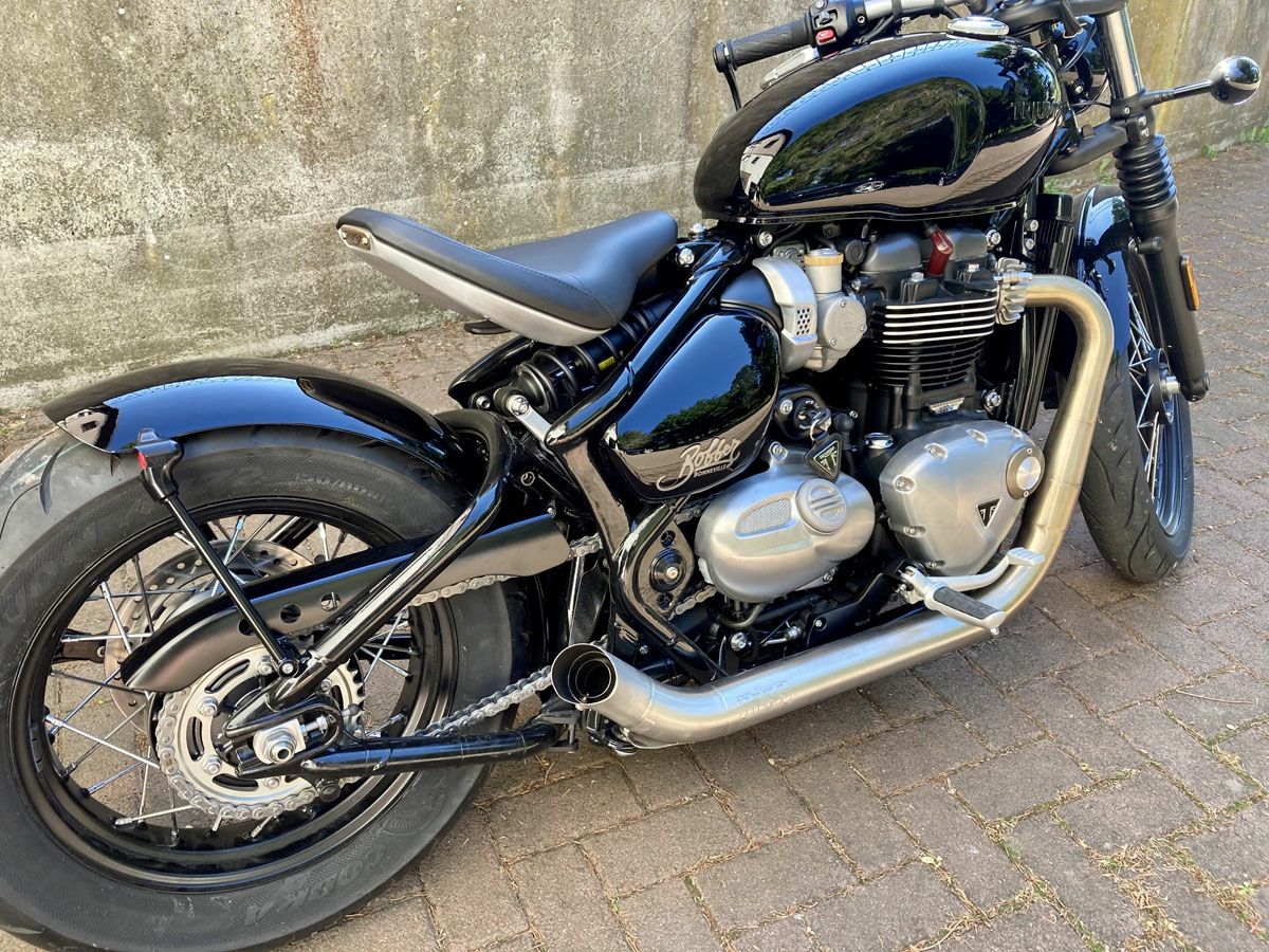 2-2ステンレスフルエキ マットブラック仕上げ 触媒の無いレーシング仕様 ボンネビルボバー 17-24