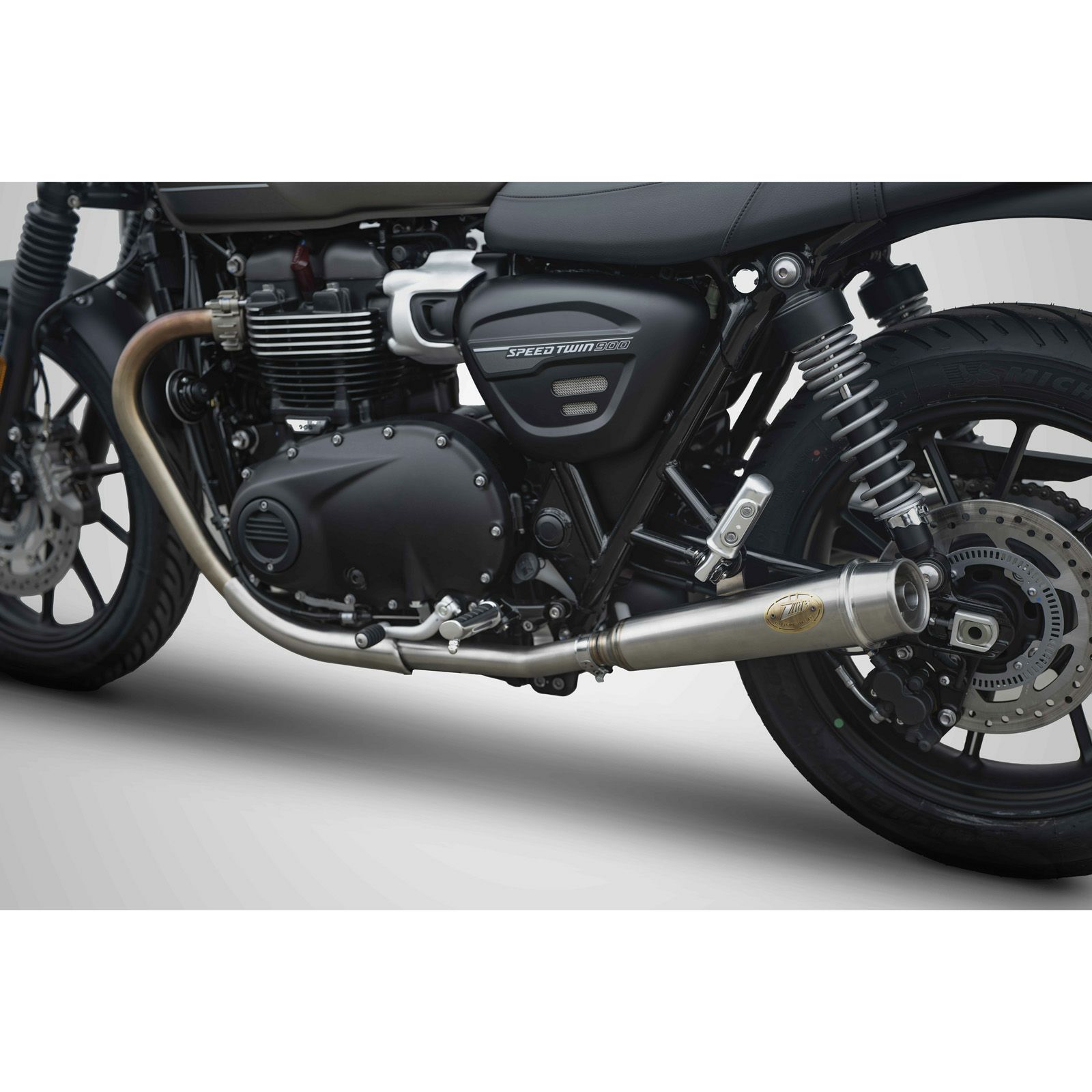 トライアンフ スピードツイン1200/900 ステンレス Trombレトロ スリップオンマフラー サテン MASS Exhaust