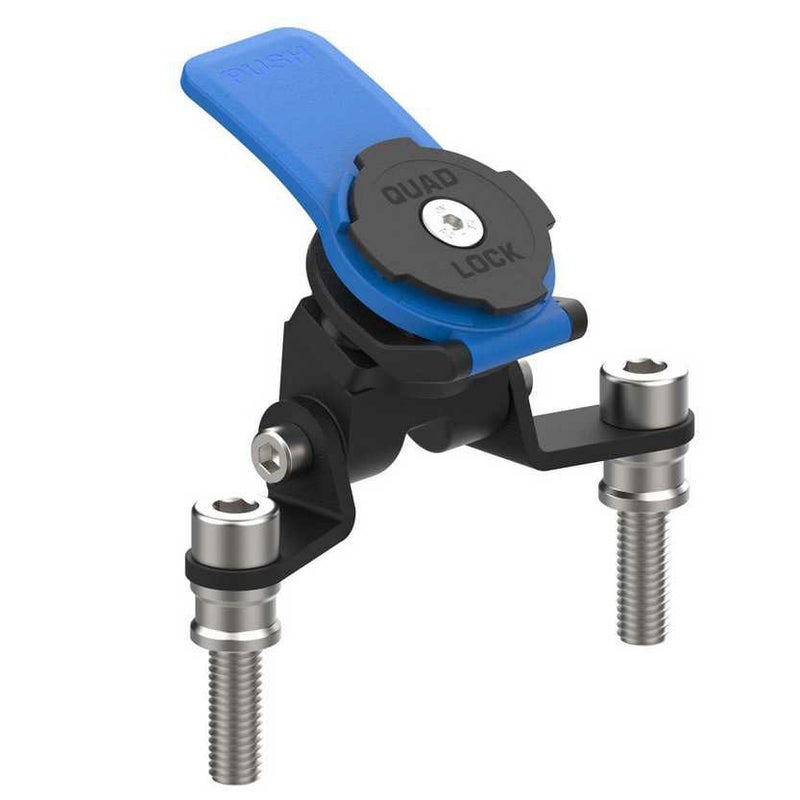CNC加工アルミニウム製ブラケットにQuad Lockマウントベースを統合し、ライダーの正面中央にスマートフォンを配置。