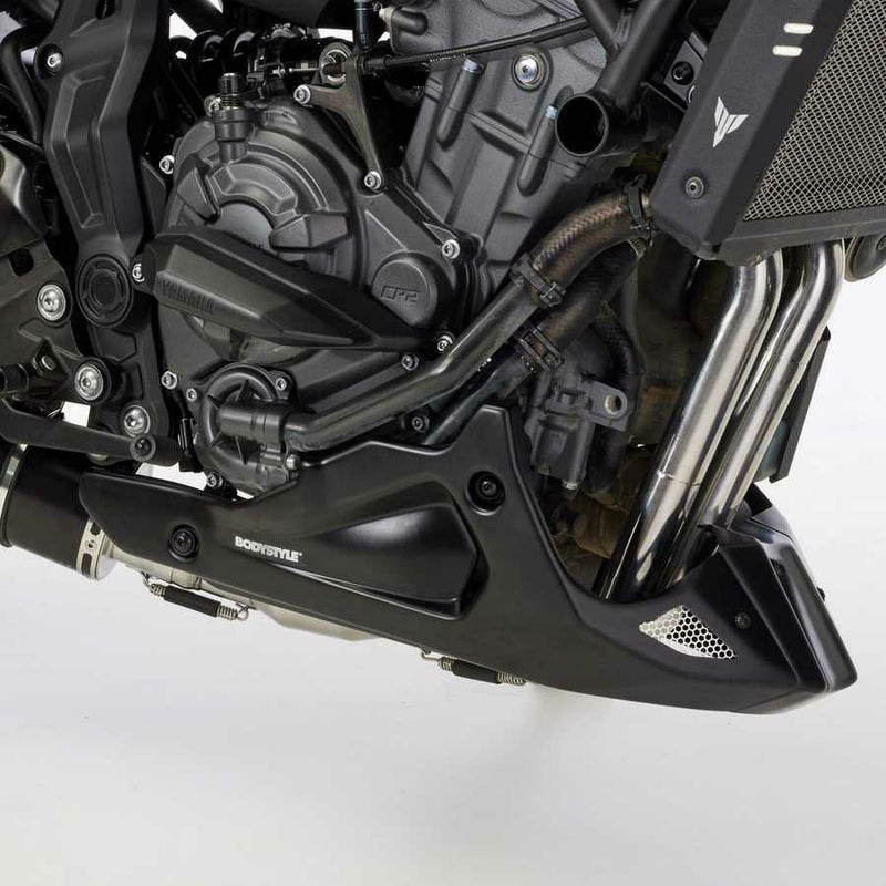 BODYSTYLE Sportsline ベリーパンは、YAMAHA MT-07の下回りを引き締め、スポーツ&ネイキッドらしい完成度の高いシルエットへ整えるスタイリングパーツです。