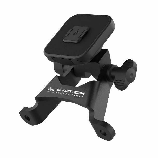 ブラケットは軽量アルミ削り出しで、Evotechの特徴であるマットブラックのパウダーコートにより耐久性と質感を両立しています。