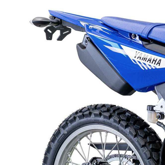 YAMAHA WR125R専用設計のEvotech Tail Tidyは、純正の大きなナンバープレートホルダーをスリムなショートユニットへ置き換え、リアビューをすっきり整えるカスタムパーツです。