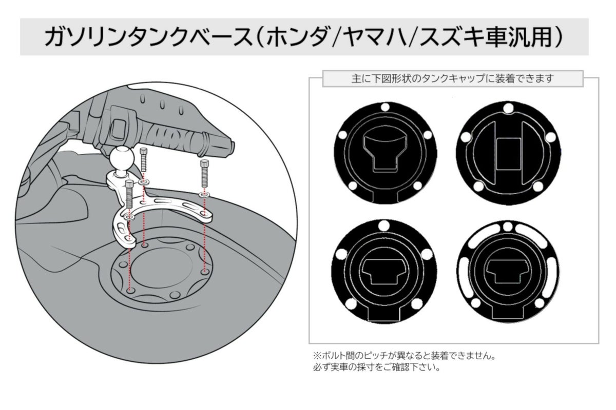 カートに入れる お気に入りに登録する 他の画像を見る ラムマウント ガソリンタンクベース(カワサキ/BMW汎用) 1インチボール 商品番号 RAM-B-411U 販売価格 ¥ 6,499 税込 SALE価格 ¥ 6,499 税込 タンクキャップリング部分に取り付けるベースパーツ 5~10日